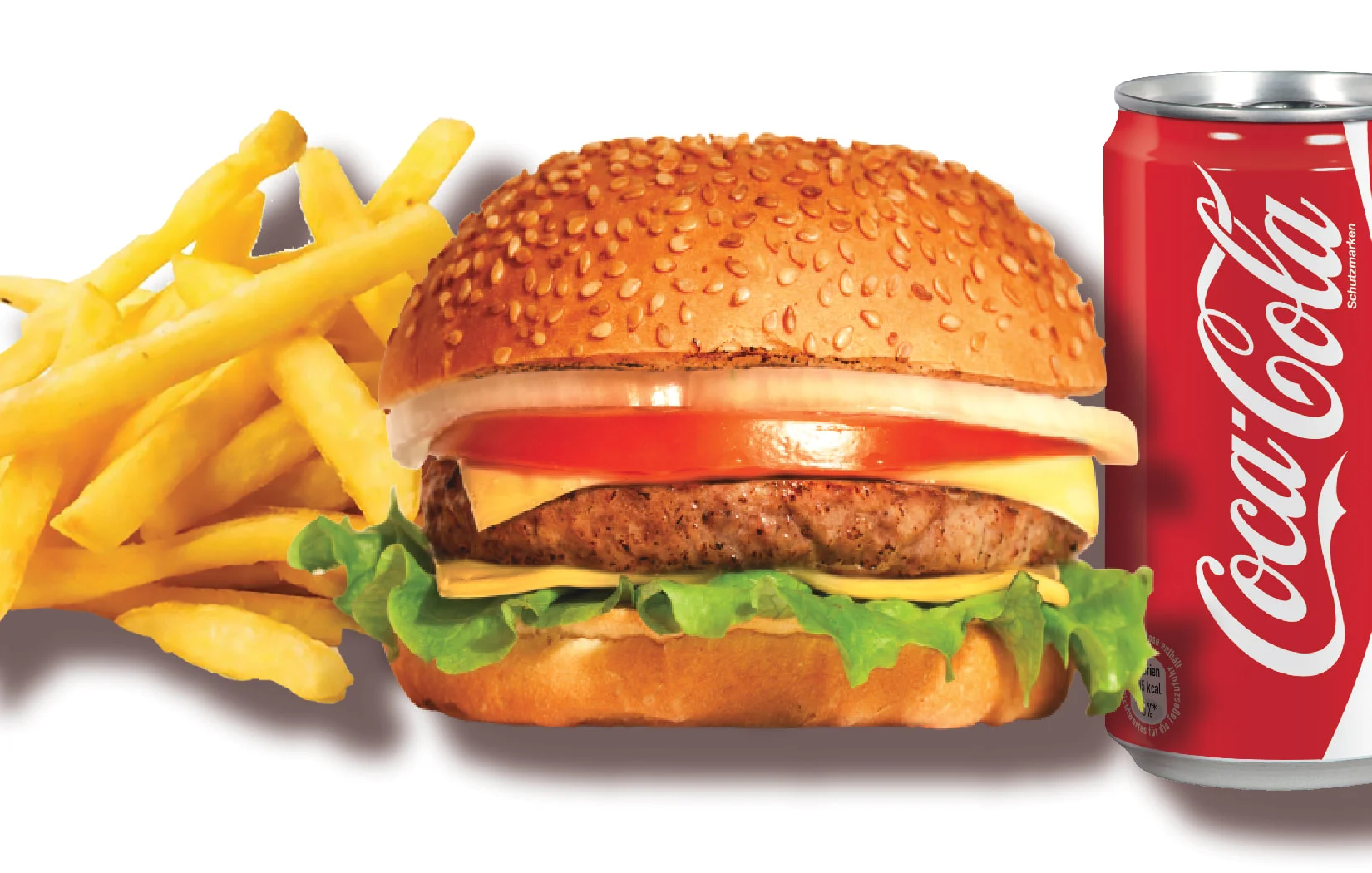 Lettuce, tomato, onions, and mayo. Served with French fries and a can of soda